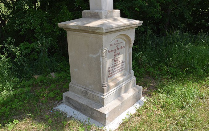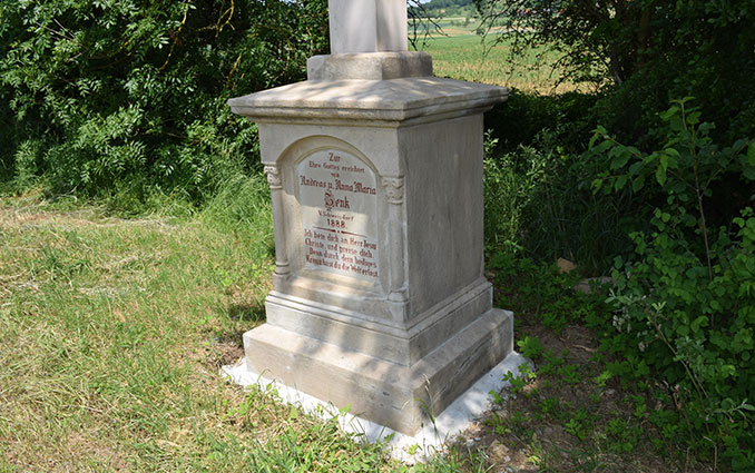 Umgefahrenes Kreuz abbauen, restaurieren und wieder aufbauen